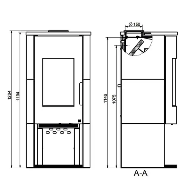 Le corps du Vitus est composé d’acier à double paroi de haute qualité qui, selon le modèle, peut également être revêtu de céramique de haute qualité en noir ou en blanc. Dans la partie inférieure, sous la chambre de combustion, se trouve un compartiment à bois aux dimensions généreuses, qui offre un espace de rangement pour quelques bûches. La chambre de combustion elle-même est dotée d’un revêtement en vermiculite, qui est fixé au moyen d’un système d’emboîtement pratique. Celui-ci permet, en cas de besoin, de retirer rapidement et facilement certains éléments et de les remplacer par de nouveaux.